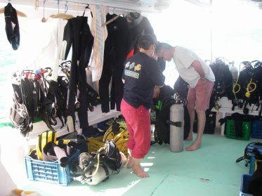 Après la plongée du matin et le repas, une fois le calme revenu, la sieste est de rigueur.