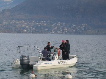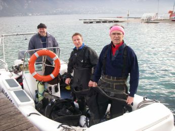 Alain nous a donné rendez vous à 10 heures 30 au port des Marquisats dans Annecy. Alex qui s’est joint à notre petit groupe et sa campagne, seront à la maison pour 9 heures. Pour lui c’est une première sur l’épave… il est fébrile et heureux (fébrile car Magalie va aller se balader en ville pendant que nous plongerons….la carte bleue va fumer !!!). Alex a entendu parler du France et plonger dessus en petit comité le ravi. L’ambiance risque d’être différente des usines à plongeurs qui déversent des dizaines de palanquées sur les épaves de la côte dans une ambiance bien chronométrée…. Ici c’est royal et paisible, le temps est clair et il fait bon, nous ne sommes pas à la bourre !!! Nous préparons notre matériel et sommes fin prêt quand Alain arrive sur son bateau.