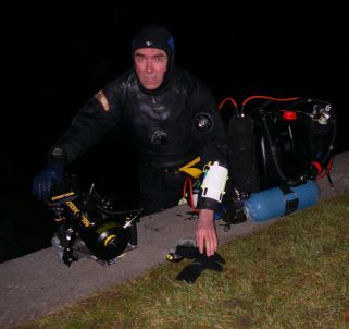 C’est vrai qu’il est grand ! Nous avons largement la place de mettre les quatre équipements plus les trois « boites à images » : deux fixes et une caméra, celle de Bertrand. Durant le court laps de temps qui nous sépare de la mise à l’eau à l’aplomb de l’épave nous décidons du déroulé de la plongée.