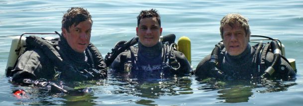 C'est donc avec plaisir que je retrouve Gilles et Mike pour une plongée dominicale. Le rendez vous est fixé à 9 heures et il ne fait encore pas trop chaud . Nous croisons des plongeurs, très matinaux, quand nous nous mettons à l'eau. Descente tranquille au bout du rocher et sans bulle puisque nos deux hélvètes sont en rEvo.