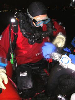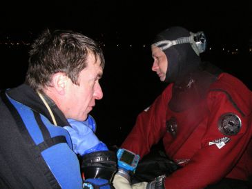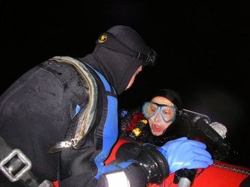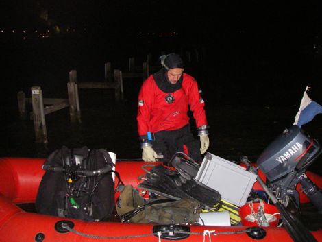 Il ne s'agit pas à proprement parlé d'une expédition mais de comment une plongée qui devait se passer sans encombres termine par une bronchite pour les uns et par un beau mal de mer, pardon de lac, pour les autres. La nouvelle se propage sur la région parmi les plongeurs hivernaux, comme une trainée de poudre. Les ombles qui fraient en principe sur les parties rocheuses du lac d'Annecy ont envahi le France, au milieu du lac donc. Bernard, Jérôme et moi nous donnons rendez vous en face du magasin d'Alain d'Espace Plongée à Annecy le Vieux pour aller voir ça de plus près. Le bateau choisi par Bernard pour l'opération est le petit zod avec le moteur de 4,45 chevaux. Nous embraquons rapidement et alors que la météo devait être clémente, un petit vent se lève. Il est 9 heures quand nous prenons le large.