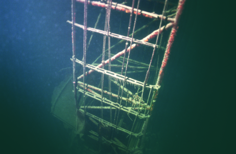La structure de l'avion parfaitement verticale, plantée dans la vase par 110 mètres de fond.