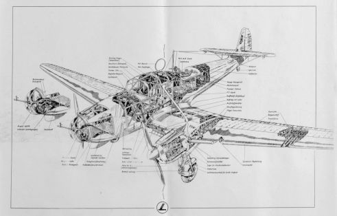 L'éclaté de l'avion ci-dessus n'est pas exactement celui qui nous préoccupe. En effet, l'avion du Bourget n'avait pas de mitrailleuse à l'avant ni sur le dessus de l'appareil derrière l'antenne Gonio. Néanmoins il nous renseigne bien sur les différents équipements de l'avion et des mensurations. En cliquant sur les images vous pouvez charger le PDF.