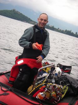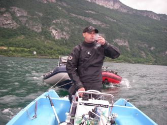 Pendant ce temps, Bernard va chercher Xavier au port de Chindrieux. Dan est passé nous voir pour nous dire qu’il ne plongera pas sur le FW et qu’il va aller sur un des tombants de la côte sauvage. Nous annonçons à Xavier qu’il va plonger seul mais cette idée ne l’effraie pas vraiment… Il se prépare, nous rejoignons la bouée et Xavier part.