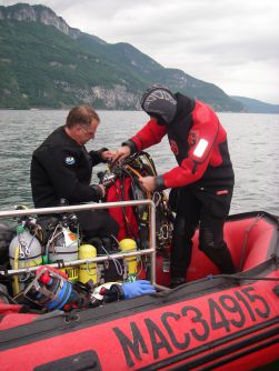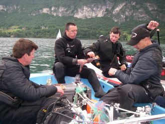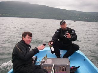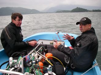 Nous partirons les premiers, Bernard, Jérôme et moi. La seconde rotation sera alsacienne, Jean en ouvert et Fabrice en recyclo. L’après midi Xavier et un pote Suisse Dan que nous avions rencontré sur le Tirpitz et revu au congrès de plongée sout à Thaïs. Le rendez vous est fixé à 8 heures au Bourget avec Jérôme. Le temps de charger et nous filons au point de rendez vous pour 9 heures, Bernard nous attend, il a déjà pointé l’épave : tout est en ordre.