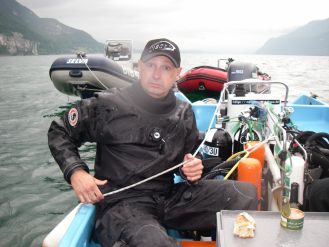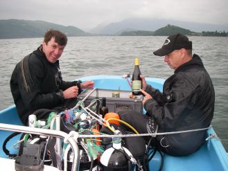 Nous partirons les premiers, Bernard, Jérôme et moi. La seconde rotation sera alsacienne, Jean en ouvert et Fabrice en recyclo. L’après midi Xavier et un pote Suisse Dan que nous avions rencontré sur le Tirpitz et revu au congrès de plongée sout à Thaïs. Le rendez vous est fixé à 8 heures au Bourget avec Jérôme. Le temps de charger et nous filons au point de rendez vous pour 9 heures, Bernard nous attend, il a déjà pointé l’épave : tout est en ordre.
