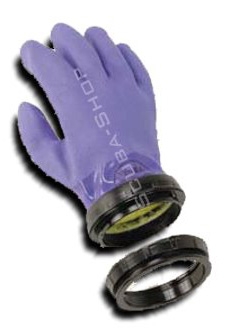Système de gants étanches complet avec cerclages, gants et joints O-Ring, fermeture à baïonette, montage facile, enfilage rapide sans l'aide de quelqu'un. Y compris gants (495) avec intérieur AMOVIBLE. M,L,XL (bagues rouges)