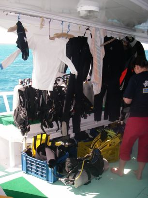 Sur les sites, même si parfois en surface il y a du monde, jusqu'à 24 bateaux le premier jour, sous la surface, l'aire de jeux est suffisamment spacieuse pour ne pas se bousculer...
