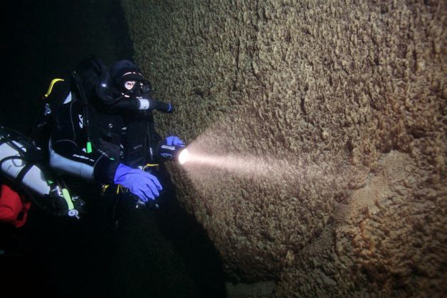Je fais mes premiers tests lors d'une plongée au Meunier au lac du Bourget. Il s'agit de la dernière plongée du stage trimix normoxique que font trois plongeurs grenoblois avec Philippe Cathiard de Savoie Plongée. Je plonge avec un autre recycleux : Thierry. Mon boîtier est en manuel, mes flashs sur 1/4, le boîtier sur 800 iso, f 5,6 et 1/20 ème de seconde. Voilà le résultat: pour une première c'est pas mal. Les grands bras que j'ai commandé également chez Aquatica pour mes deux SB 105, sont vraiment top, encombrants mais il faut ça pour avoir une bonne diffusion et ne pas trop voir les particules.