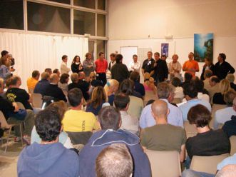 Monsieur l’adjoint aux sports de la mairie de Cavalaire, Jean Pomaret de Mio Palmo, Grégoire Koulbanis, Pascal Bernabé, Jean-Pierre Imbert, la compagne de Jean Pomaret, François Brun, Didier Lefevre TDI, Arnaud et Françoise Niel de Eaux Bleue,Aldo Ferrucci, Thierry Mathieu de Mio Palmo et de Azur Tech Dive, une monitrice de Moi Palmo, à genoux, Nathalie Mathieu de Moi Palmo, et à gauche en rose Madame l’épouse de l’adjoint aux sports de la mairie de Cavalaire.