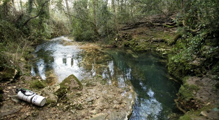 Nous faisons un point sur les conso : le courant à l'aller les a majorées mais les deux compères en ouverts sont toujours dans les valeurs de la règle des quarts. Pas de souci, au retour, le courant nous portera. En raison du débit de la rivière, la jonction entre le S1 et le S2 se fait par voie d'eau. Au retour, c'est Philippe qui passera le premier, suivi de prêt pas Alex, je ferme donc la marche. J'ai juste le temps de mettre la tête sous l'eau, de rouvrir mon robinet d'O2 pour me rendre compte que je suis tout seul.... bon c'est sûr, ce n'est pas comme si je plongeais avec des moniteurs.... un œil sur mes rEvodreams, tout est en ordre, j'allume les lampes de mon casque pour me sentir moins seul et je me fais ma p'tite balade de retour tranquille dans le silence... Ah mais c'est de la lumière là bas .... les voici qui reviennent me chercher pour la bifurcation.... un p'tit doute ???? Le retour se ferra par la droite, histoire de changer. Nous avons le temps, avant de sortir, de faire quelques images. Il fait toujours beau quand nous sortons de la vasque, une centaine de minutes après notre départ.
