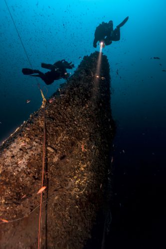 5 tubes lance-torpilles, quatre à la proue et un à la poupe,